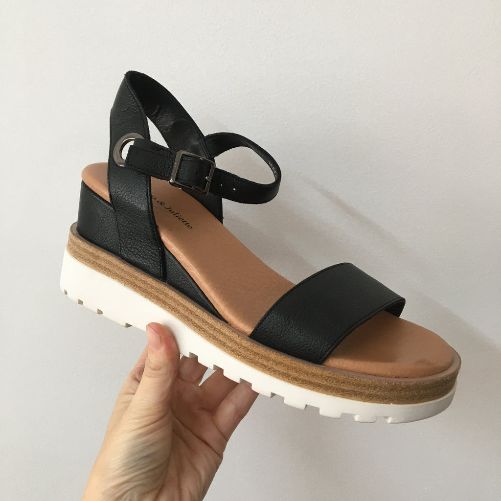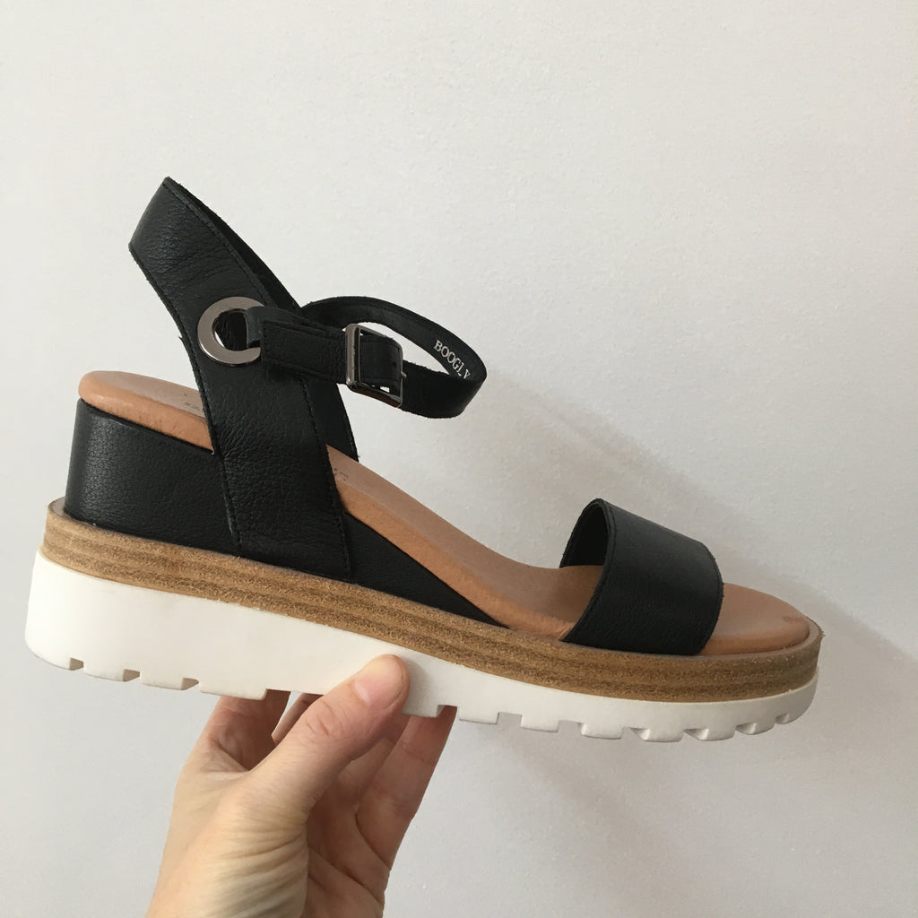 Elevated on a wedge midsole, these leather sandals are a stylish choice with a contemporary edge. The perfect choice for summer outfits, wear BOOGLY by Django & Juliette to city bars and beach weddings.