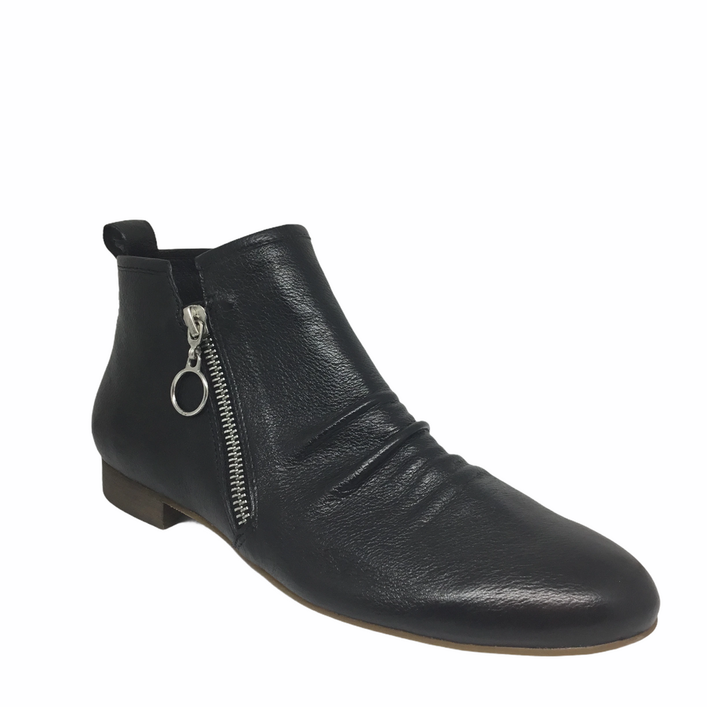 GINGERLY by Django & Juliette is a contemporary take on the classic ankle boot, crafted from premium leather with soft ruched detailing. The cropped design features a stylish, functional zip trim to provide a snug and comfortable fit, whether layered with winter woollies or styled with your favourite jeans.