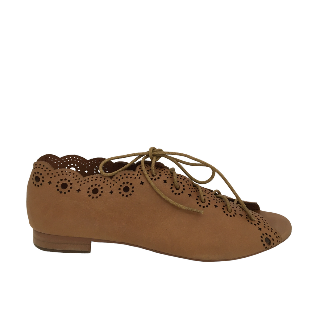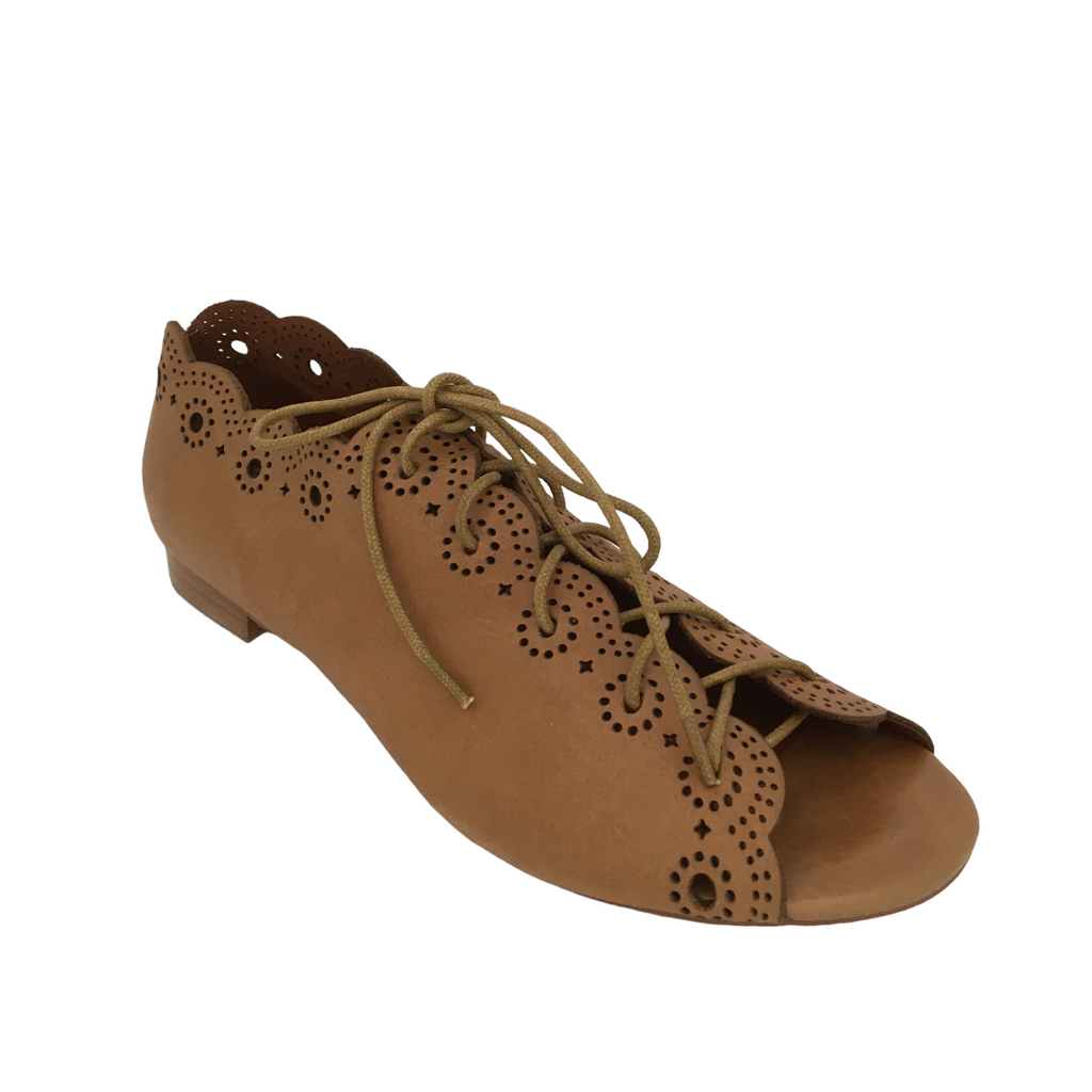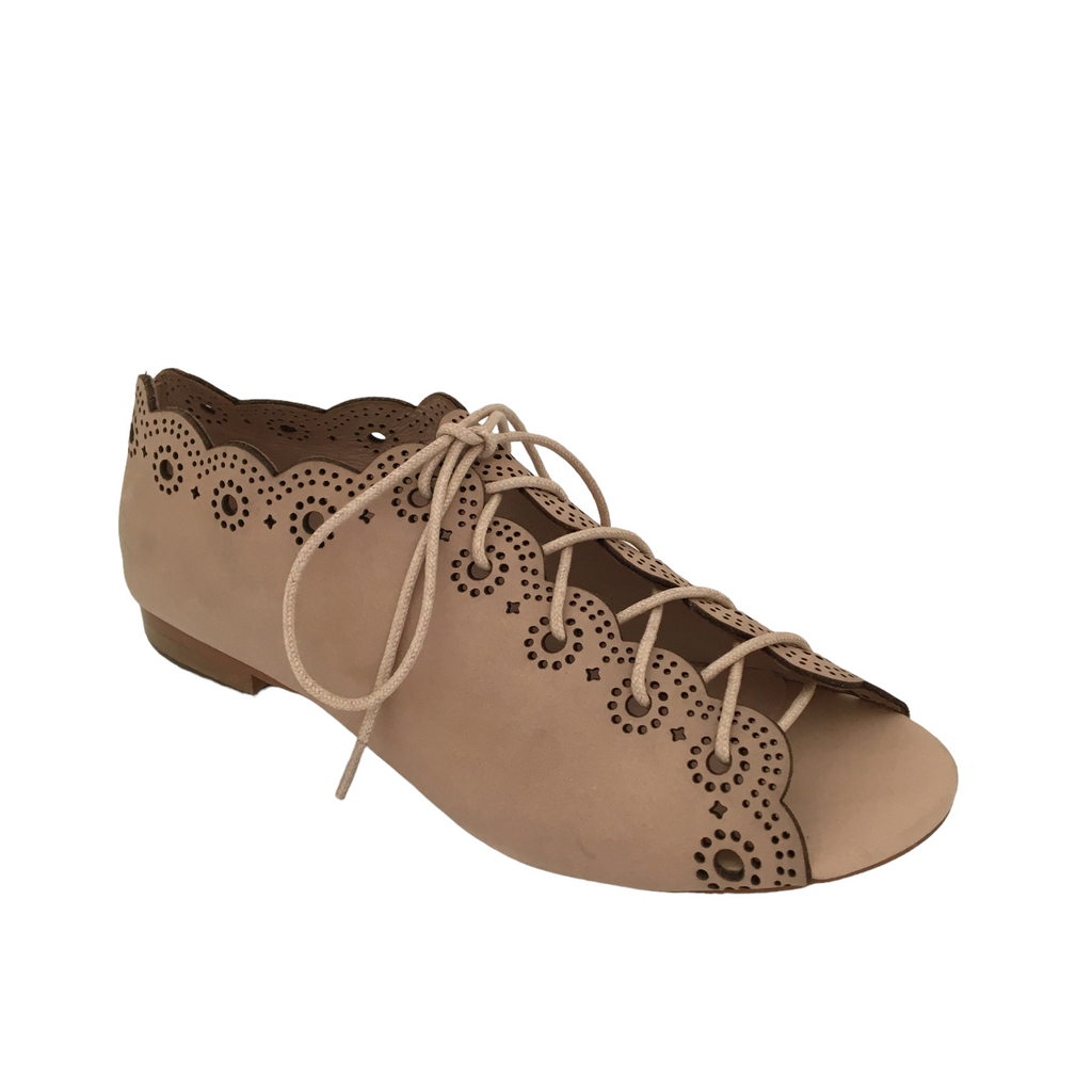 The trend that is booming this season:- laser cut. With gorgeous scallop detailing and lace-ups, this sandal is a must to include in your definitive summer shortlist.