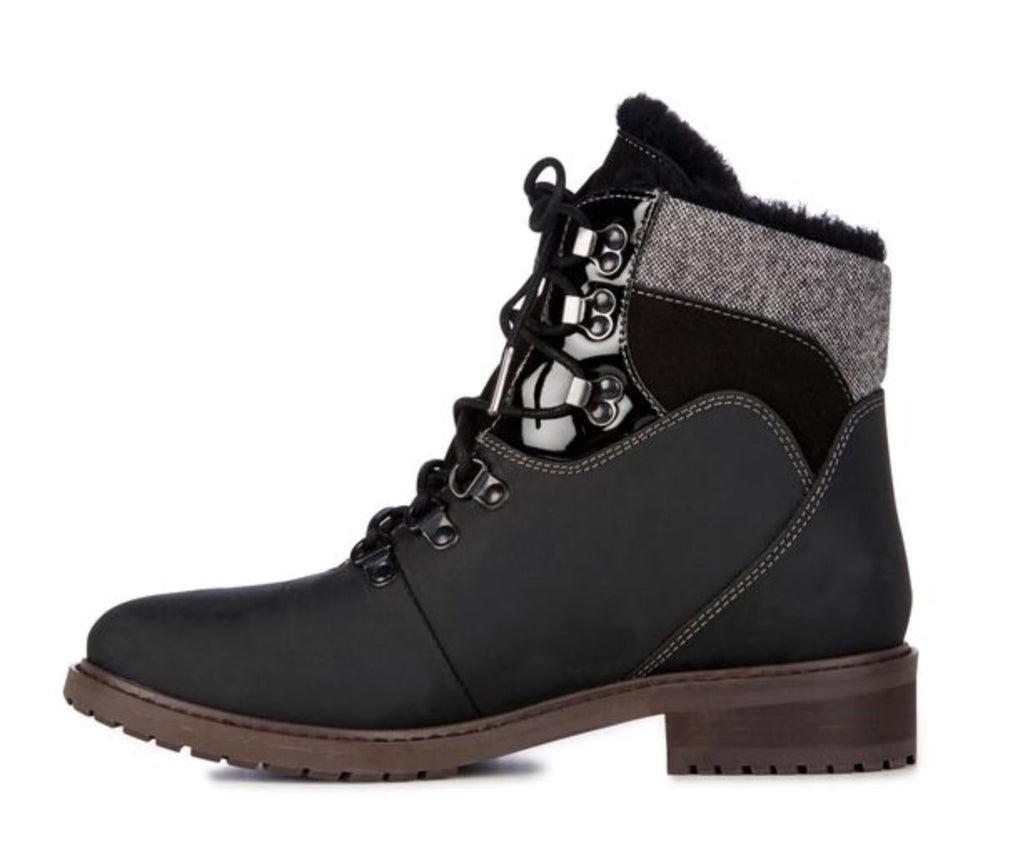 The Primrose Sands boot merges waterproof protection with outdoor-inspired styling. Hardwearing leather and suede is combined with a durable, waterproof, lug outsole for traction and cold-weather wearing. Trims of tweed textile and high shine metal hard wear add texture and detail.