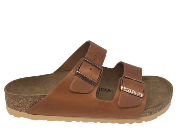 These sandals feature the classic Arizona adjustable two-strap in high quality, oiled leather. The original Birkenstock cork-latex footbed supports your feet with its anatomical design, moulding to the shape of your feet over time for one of a kind comfort. Designed to crackle and fade over time, there's nothing cooler than this 'weathered' look leather finish with natural scratch marks band colour variations meaning each pair is unique!
