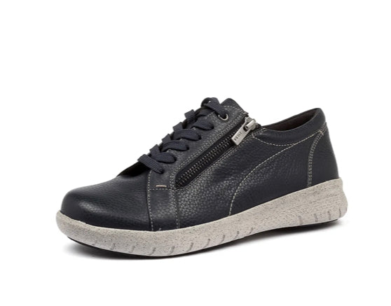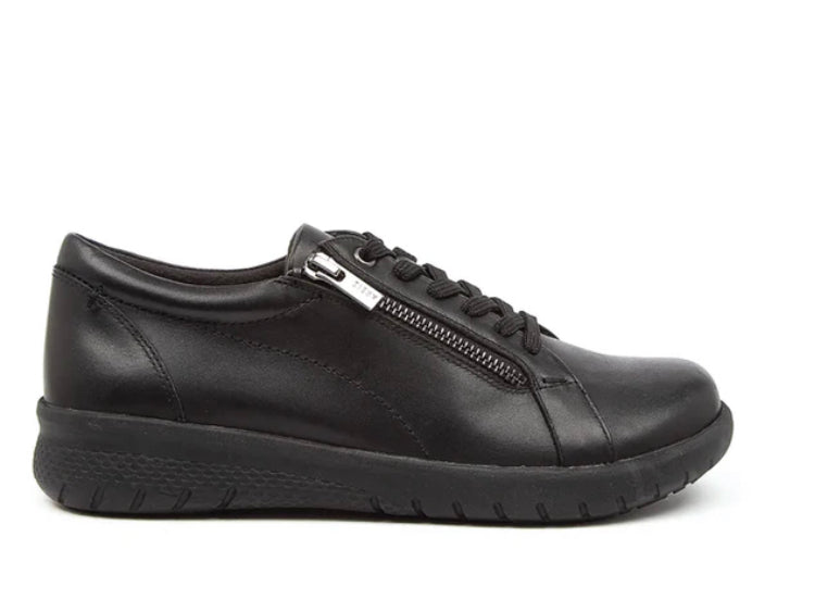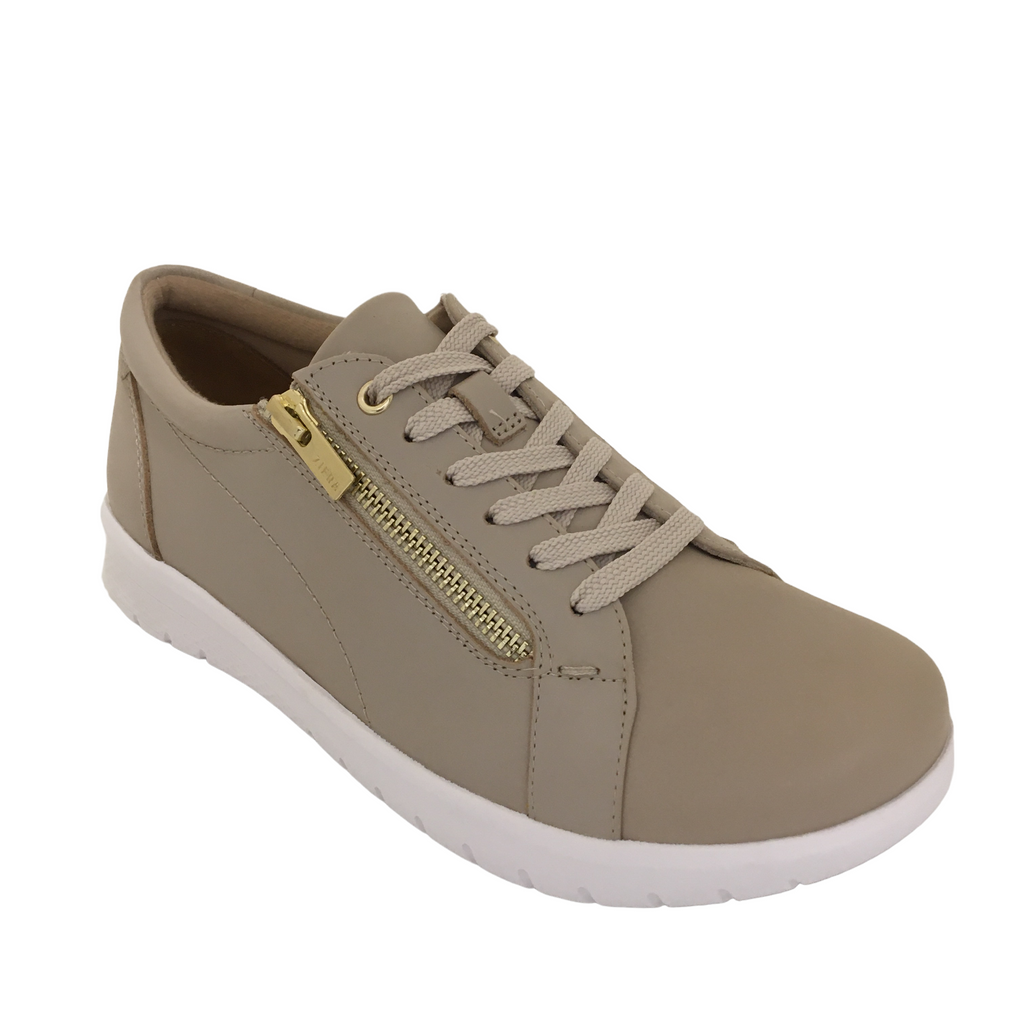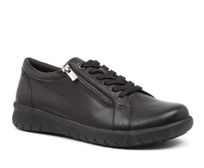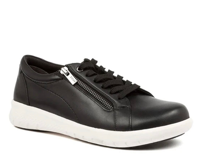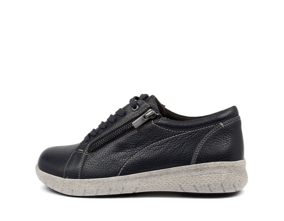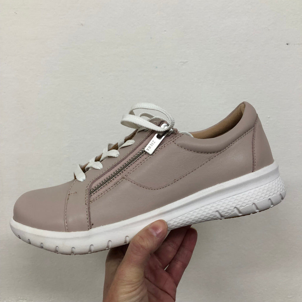 Perfect for long days on your feet, the SOLAR sneaker by Ziera is a convenient casual option for year-round wear. The durable leather upper features both a zip and lace fastening, fitted with a removable Super Support footbed that can be swapped for your own orthotics. This footbed features flexible, shock-absorbing PU with arch support, metatarsal cushioning and a contoured heel cup with a wider, deeper fit for excellent stability.