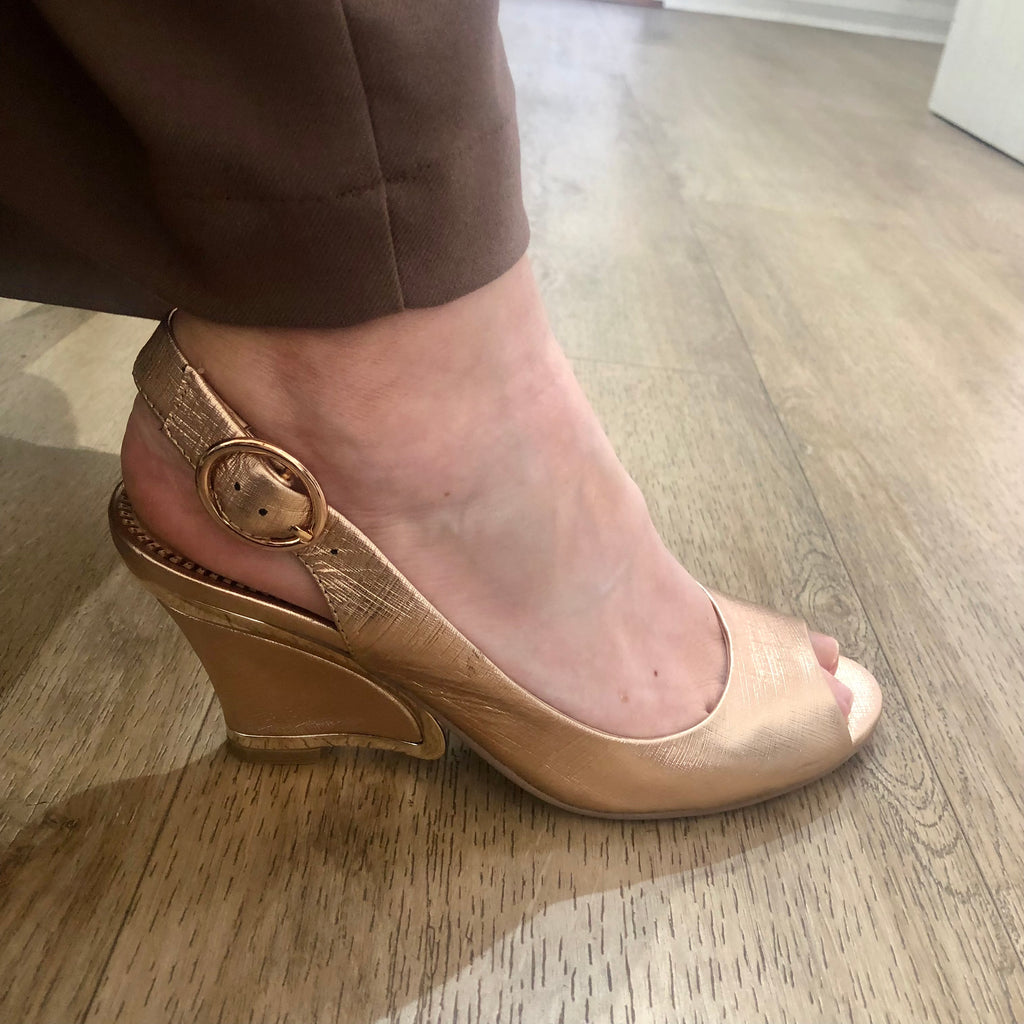 Just the thing for Spring! This classic style is made extra special with metallic trim and patent shine. A true chameleon, go from desk to dinner without missing a step!