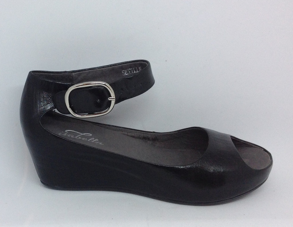 Isabella Seville Black ~ Leather Wedge Heel