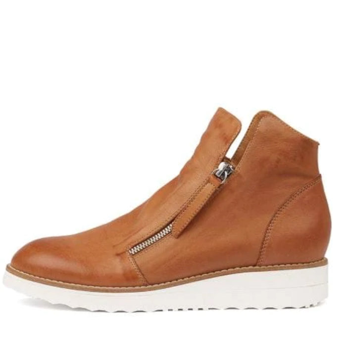 This sneaker-inspired ankle bootie is the style of the season! Composed of beautifully soft leather, the design features a twin-zip fastening and a foam sole that gives it a sporty finish. For a chic off-duty look, pair this piece with your favourite slim pants and a lightly distressed denim jacket.