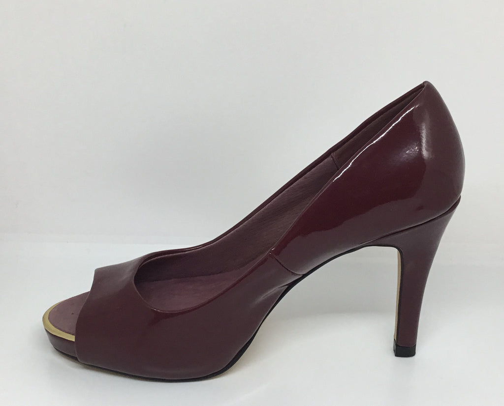 A glamorous pair of wine patent leather Lily Rose peep toe heels perfect for work or for play, these heels have 9cm heel to really and wow to your wardrobe.
