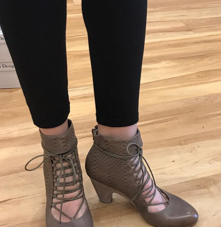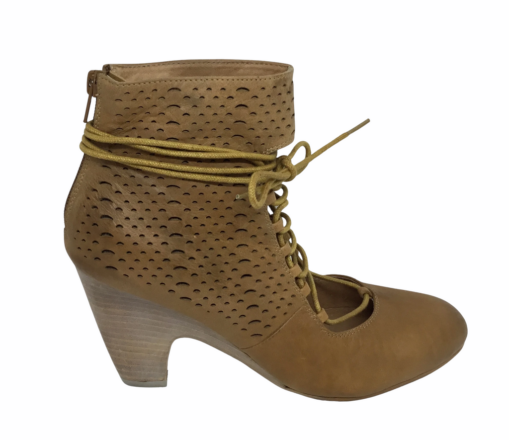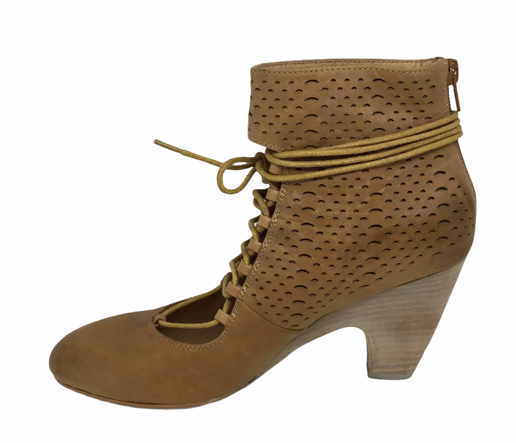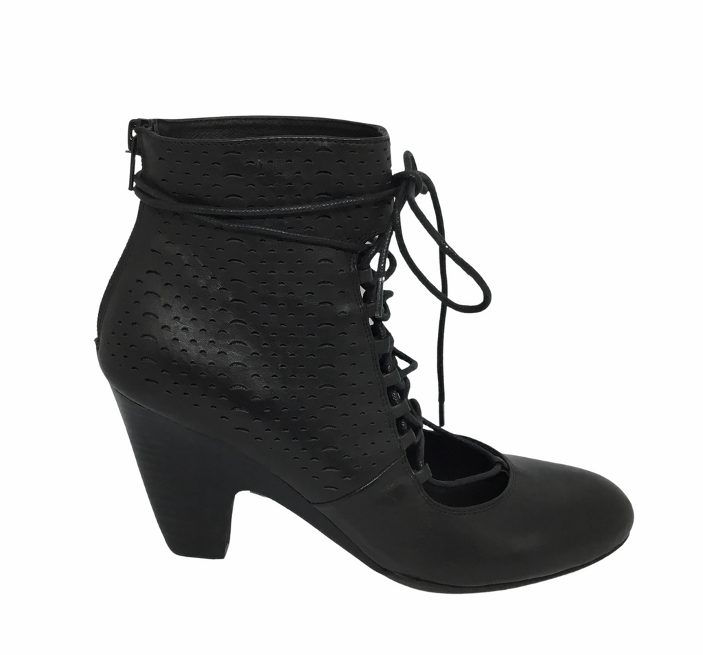 A cheeky cut leather heeled lace up with the beauty of keeping your toes away.