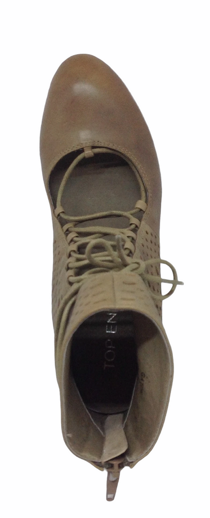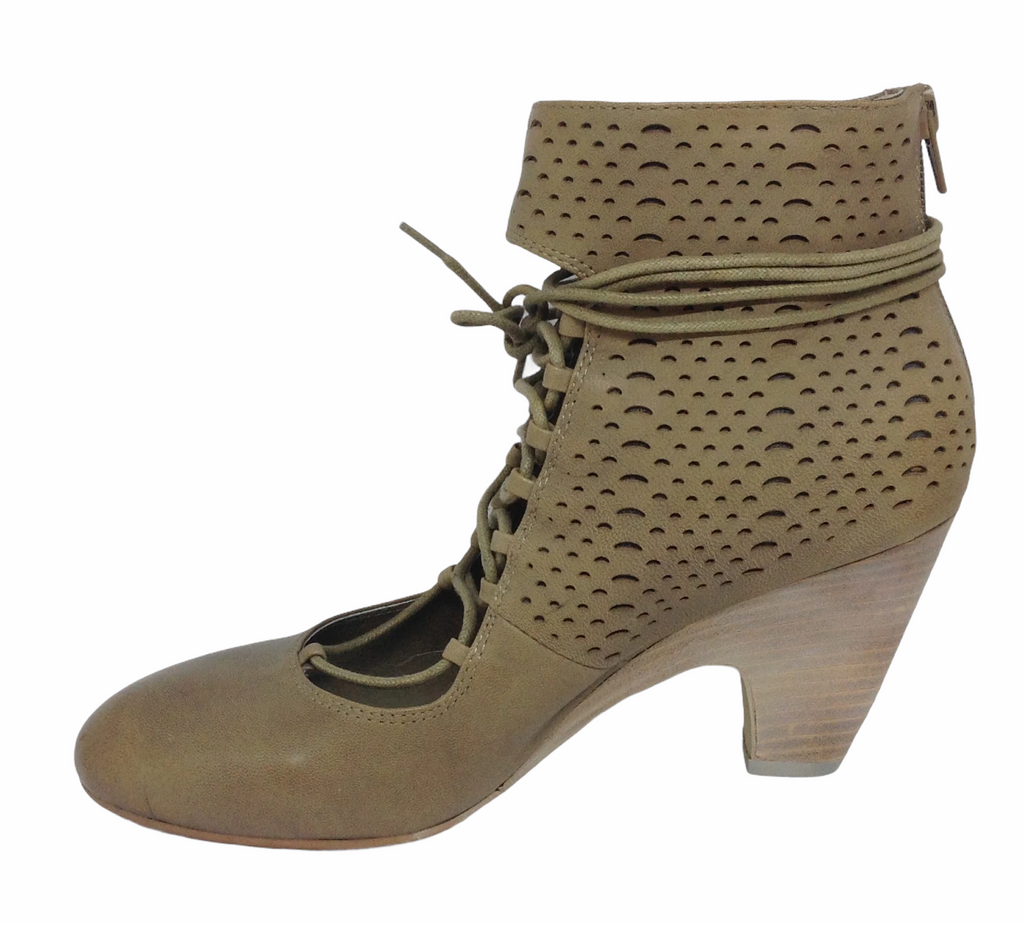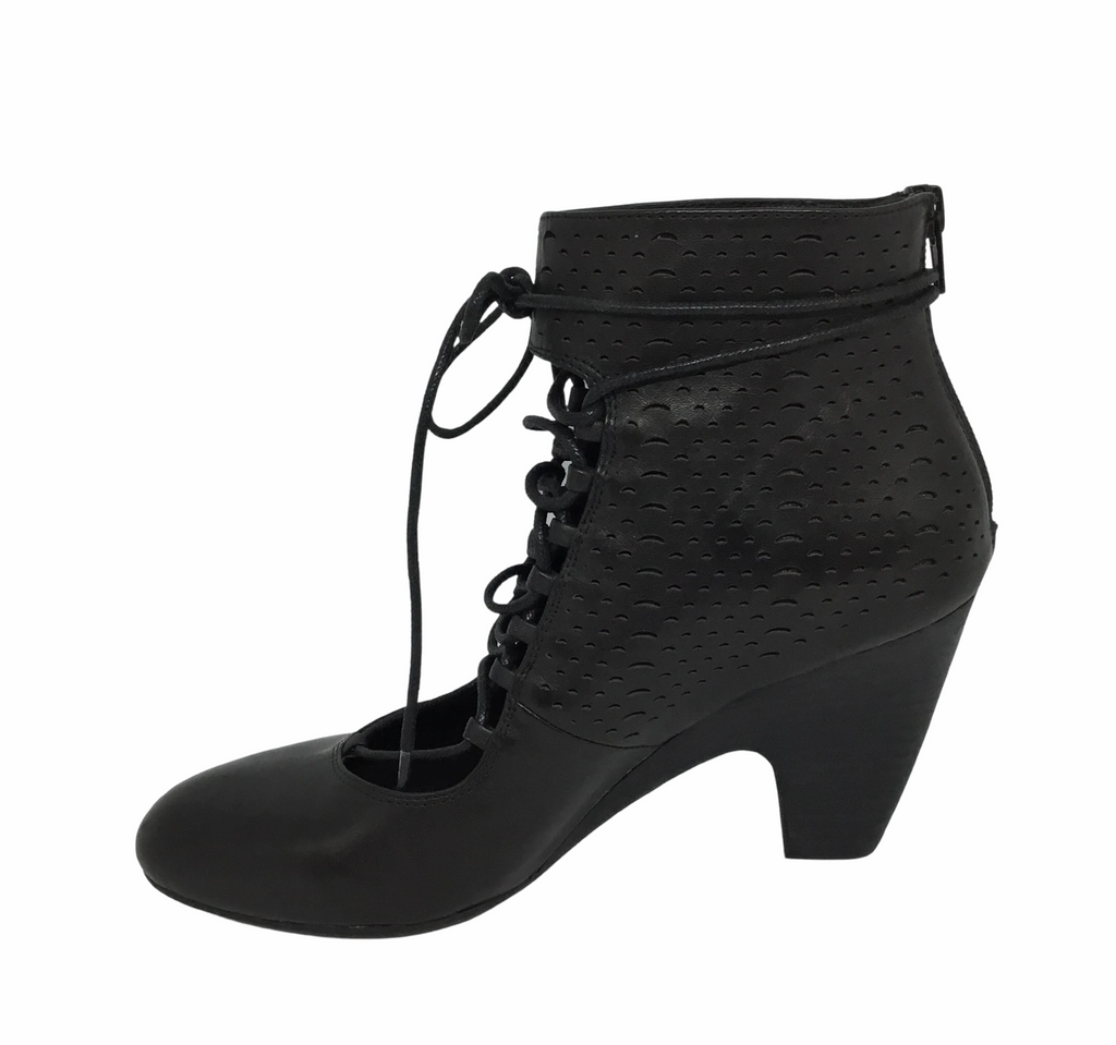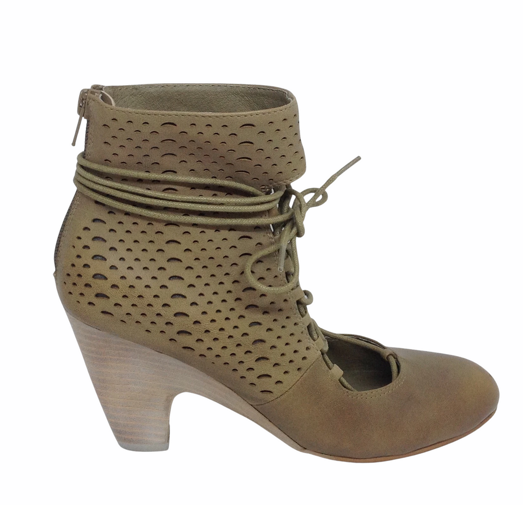 A cheeky cut leather heeled lace up with the beauty of keeping your toes away.