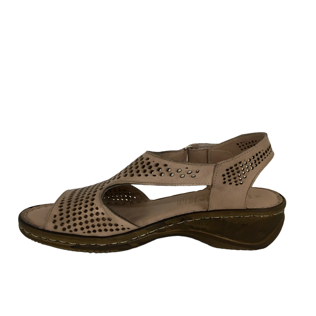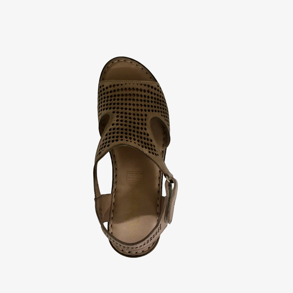 Cabello RE640 is a fashionable wedge sandal that features a cut out detailed leather upper.