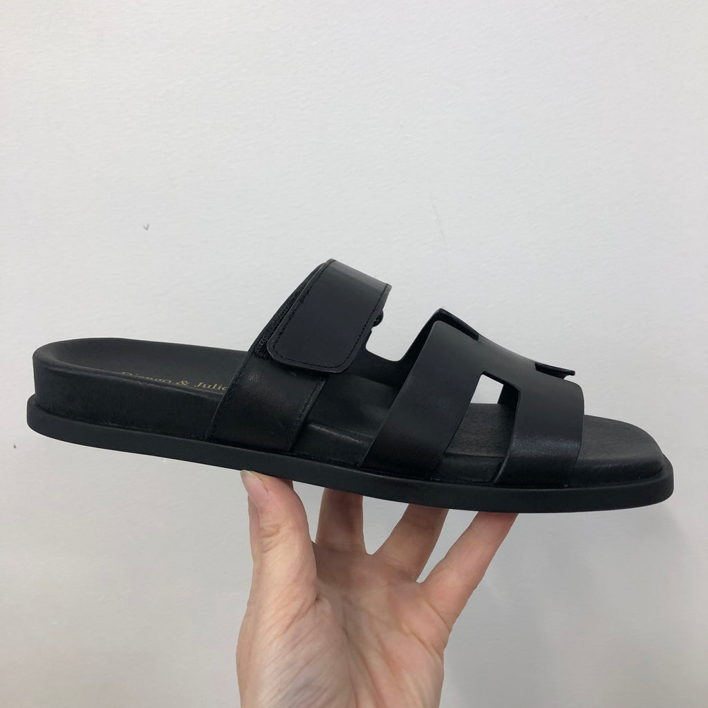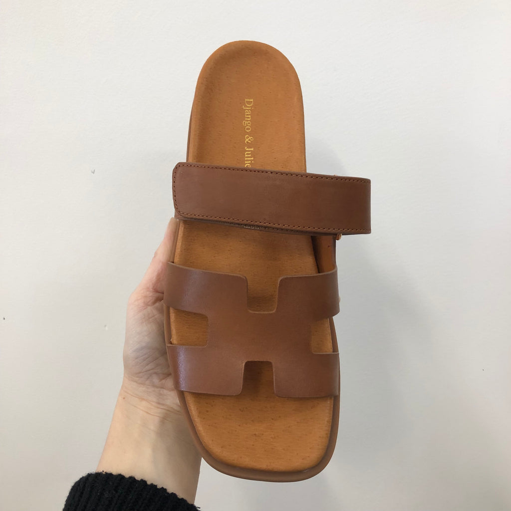 The Django and Julliette Nodette summer slide combines premium leather with expert design for superior coverage and comfort. Featuring adjustable Velcro straps, it ensures a customizable fit while providing essential arch support for all-day wear. Ideal for warm weather, this slide blends style and functionality seamlessly.