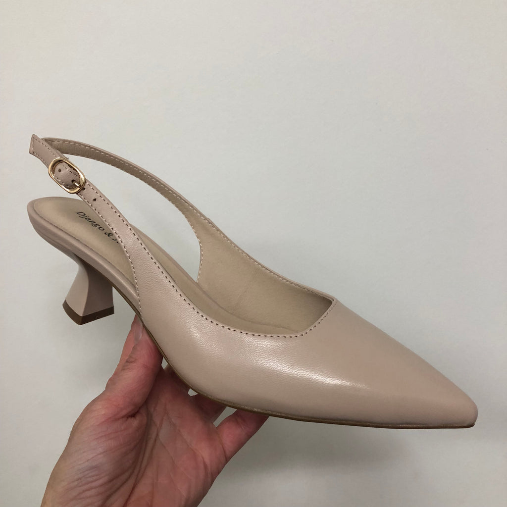 The Linly leather slingback heel combines timeless elegance with versatile sophistication. Featuring a refined pointed toe and classic silhouette, this style effortlessly transitions from boardroom to evening occasions. The secure slingback design ensures all-day comfort, while the sleek profile pairs beautifully with tailored suits, pencil skirts, and occasion dresses. Available in both classic black and soft nude, these heels are an investment piece that anchors any professional or formal wardrobe with understated polish.