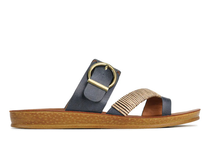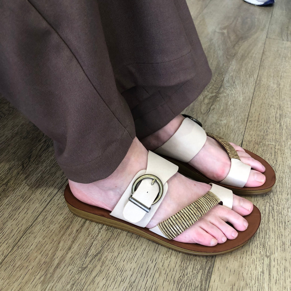 Los Cabos captures the spirit of fun in the sun with their Bria sandal. The ease of a slip-on is given a touch of natural beauty with our woven bamboo wrap gracing the toe strap, whilst the antique round buckle on the back strap adds a treasure box accent. Ideal for resort escapes, beach walks or just a shoe to slip on when you need to rush out the house.