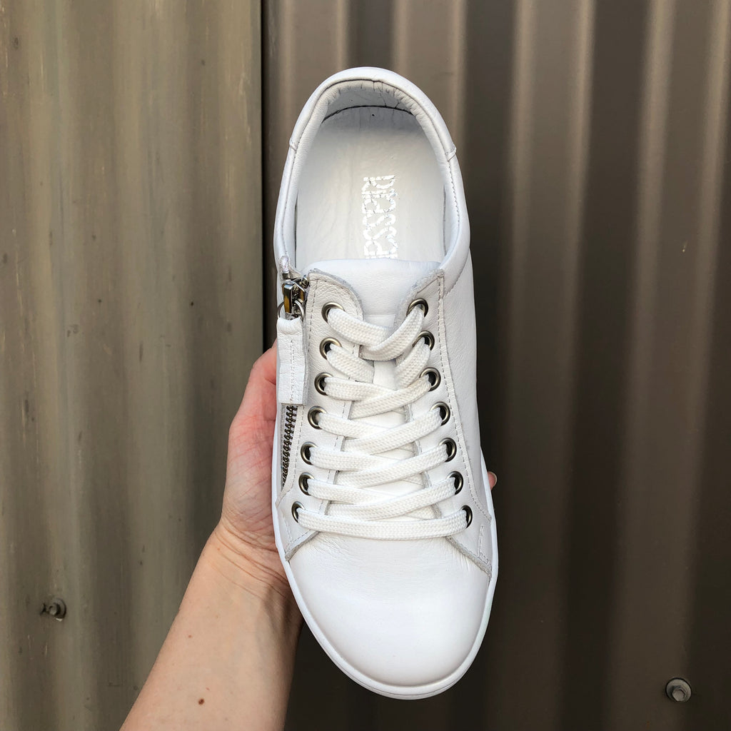The Rilassare Token Fresh combines European craftsmanship with everyday practicality. Constructed from premium leather, this sneaker delivers refined comfort through its removable footbed—ideal for customisation or replacement. The innovative zip access system ensures effortless on-and-off convenience without compromising the shoe's sleek aesthetic. Designed for those who appreciate quality construction and thoughtful details, this white leather sneaker transitions seamlessly from casual to smart-casual settings.