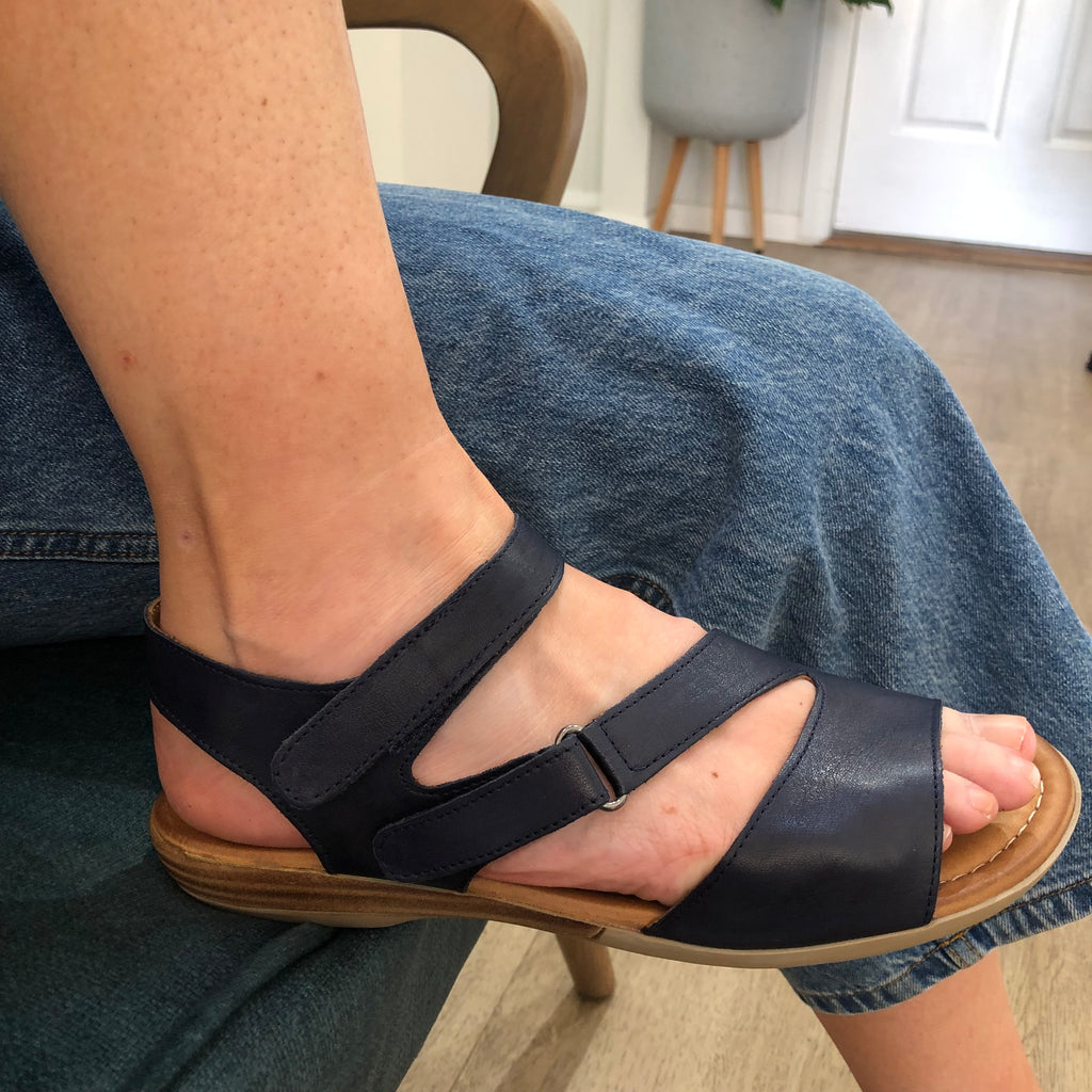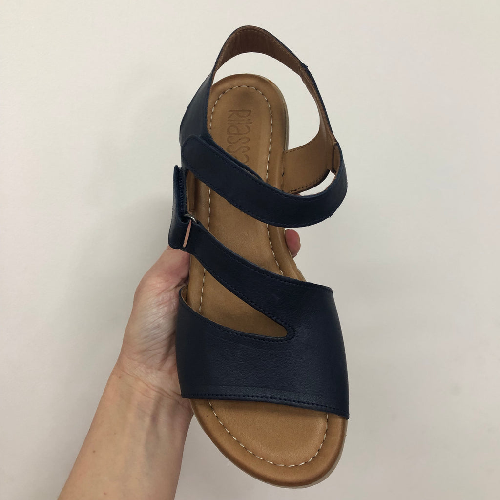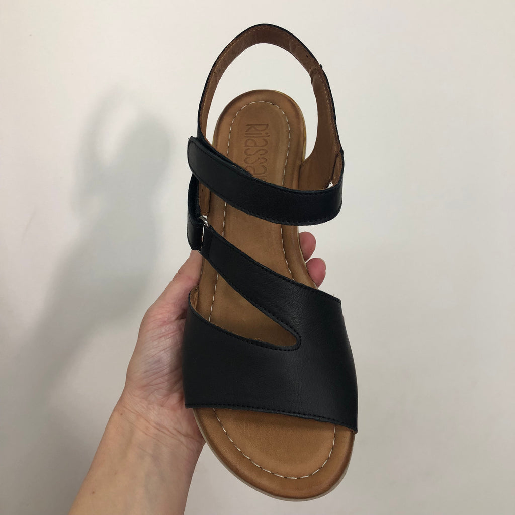 Crafted from premium leather, the Rilassare Tainting sandal offers all-day comfort with excellent support. Its velcro adjustment ensures a custom fit, while the great front coverage provides protection and stability during your summer walks. Available in Black, Navy, and Tan, this sandal combines style and functionality for effortless seasonal wear.