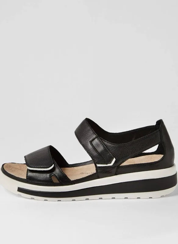Ziera Gedd ~ Tan ~ Black ~ Leather Sandal